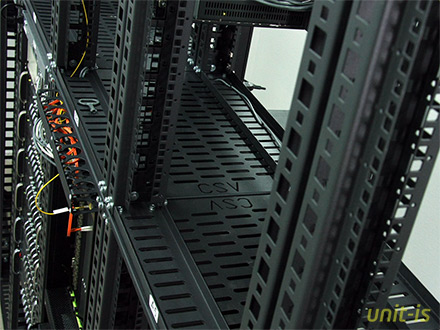 Розміщення серверів у дата-центрі UNIT-IS проводиться виключно у «юнітовому» виконанні 42U та 56U. Постачальником стаціонарних шаф та стійок обрано українську компанію «Конструктив ОКБ», яка виробляє міцні та надійні стійки з багатим вибором аксесуарів, полиць, органайзерів та напрямних.
