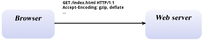 До запиту браузер додає заголовок AcceptEncoding, інформуючи веб-сервер про бажання отримати сторінку в стислому вигляді. Значення заголовка AcceptEncoding – методи стиснення, які підтримуються браузером (gzip та deflate у прикладі нижче).